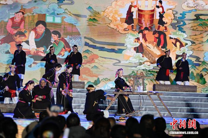 4月3日,西藏林芝市第二十三屆桃花旅游文化節(jié)開幕式文藝演出在林芝市工布公園圓滿舉行。本次演出以雪域江南自然風(fēng)光為底色,以工布民俗文化為內(nèi)核,通過精彩紛呈的文藝展演,全面展現(xiàn)林芝獨特的生態(tài)之美、人文之韻、發(fā)展之盛,奏響了文旅融合、民族團結(jié)、奮進發(fā)展的春日樂章。圖為開幕式上的文藝表演非遺歌舞《工布遺韻》。中新社記者 貢嘎來松 攝