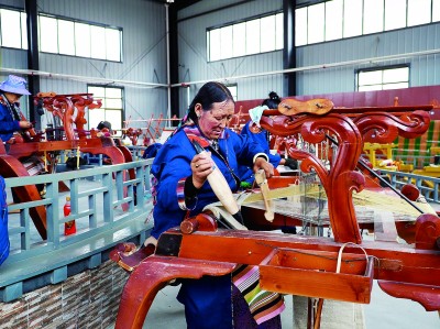 在山南市乃東區(qū)的民族嘩嘰手工編織專業(yè)合作社,一名手工藝人正在工作。“嘩嘰”是藏族手工生產(chǎn)的氆氌(羊毛織品)中最高級的產(chǎn)品。目前,民族嘩嘰手工編織專業(yè)合作社主要生產(chǎn)傳統(tǒng)藏裝、披肩、圍巾等產(chǎn)品,年產(chǎn)值達(dá)到900萬元。郭紅松攝