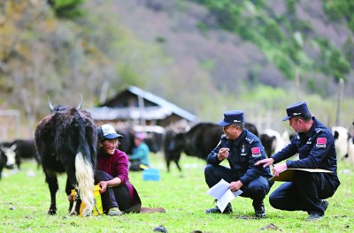 林芝市察隅縣竹瓦根邊境派出所的移民管理警察,在海拔約4000米的嘎達(dá)村走訪牧民,進(jìn)行戶籍信息調(diào)查登記。何宇恒攝