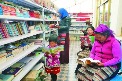 幾名農(nóng)牧民和孩子在那曲市安多縣強瑪鎮(zhèn)社區(qū)的牧家書屋閱讀圖書。光明日報記者 郭俊鋒攝