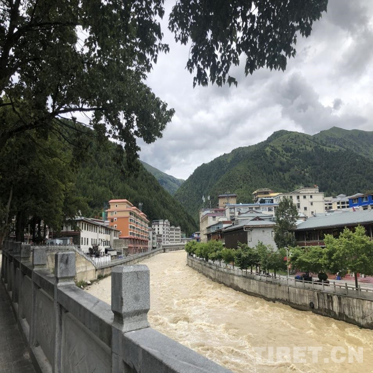 圖為亞東河從西藏自治區(qū)日喀則市亞東縣整潔漂亮的縣城穿城而過