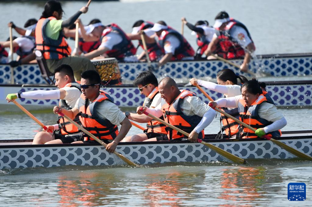當日,2025年天津港保稅區(qū)龍舟大賽在天津空港經(jīng)濟區(qū)西湖舉行,轄區(qū)內(nèi)的20支企事業(yè)單位代表隊同臺競技,奮楫競渡,迎接端午節(jié)的到來。