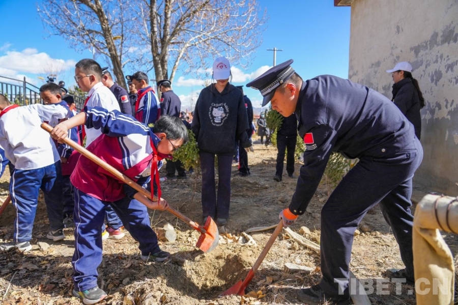 西藏日喀則邊境管理支隊組織民警和少先隊員清掃烈士陵園周邊環(huán)境