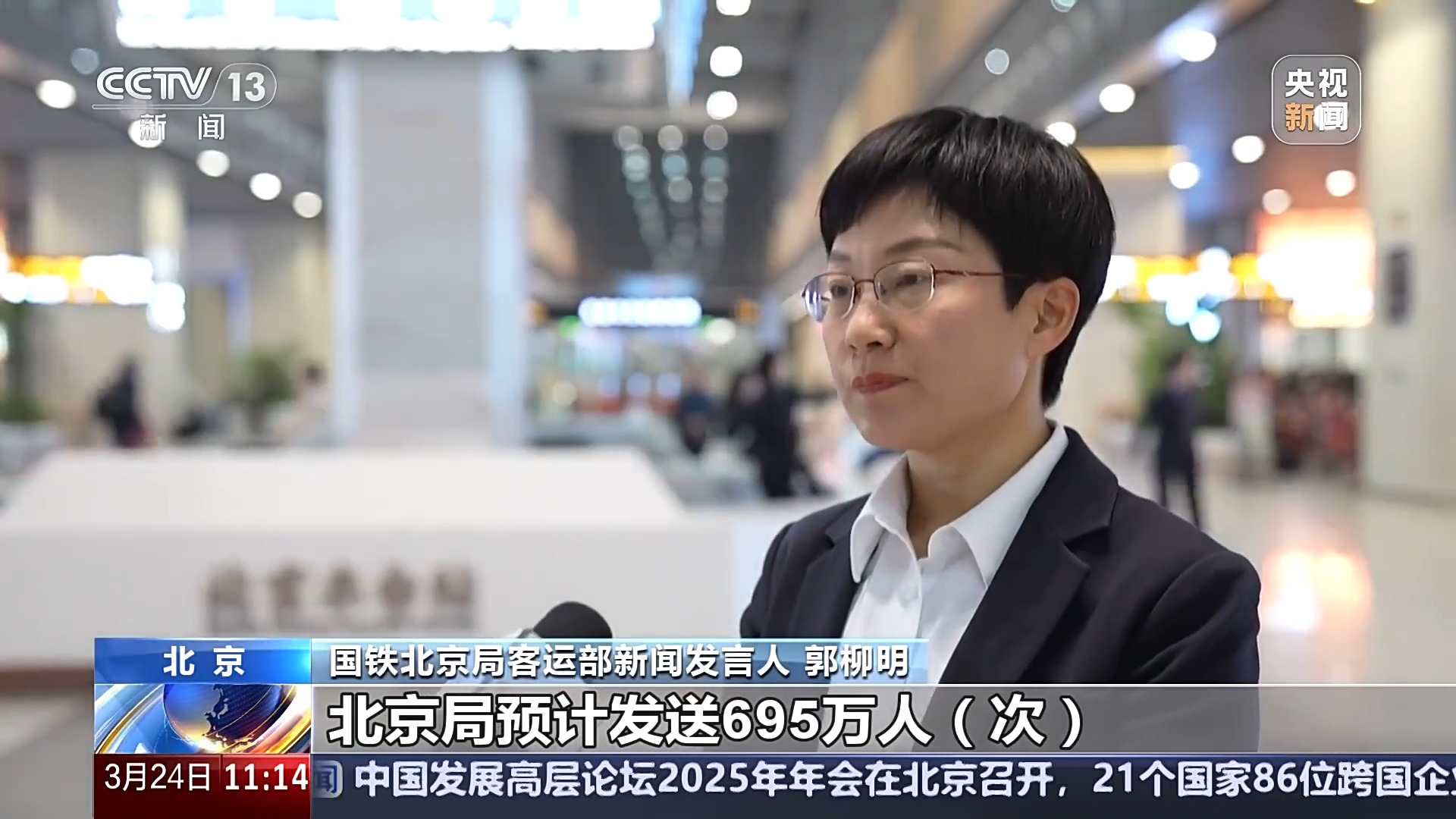 國鐵北京局客運(yùn)部新聞發(fā)言人 郭柳明:清明運(yùn)輸期間5天,北京局預(yù)計(jì)發(fā)送695萬人次,同比增幅4.6%。高峰日在4月4日,預(yù)計(jì)發(fā)送165萬人次。客流主要集中在濟(jì)南、太原、鄭州、沈陽、青島、西安以及北京至天津、保定、石家莊、張家口往返間。