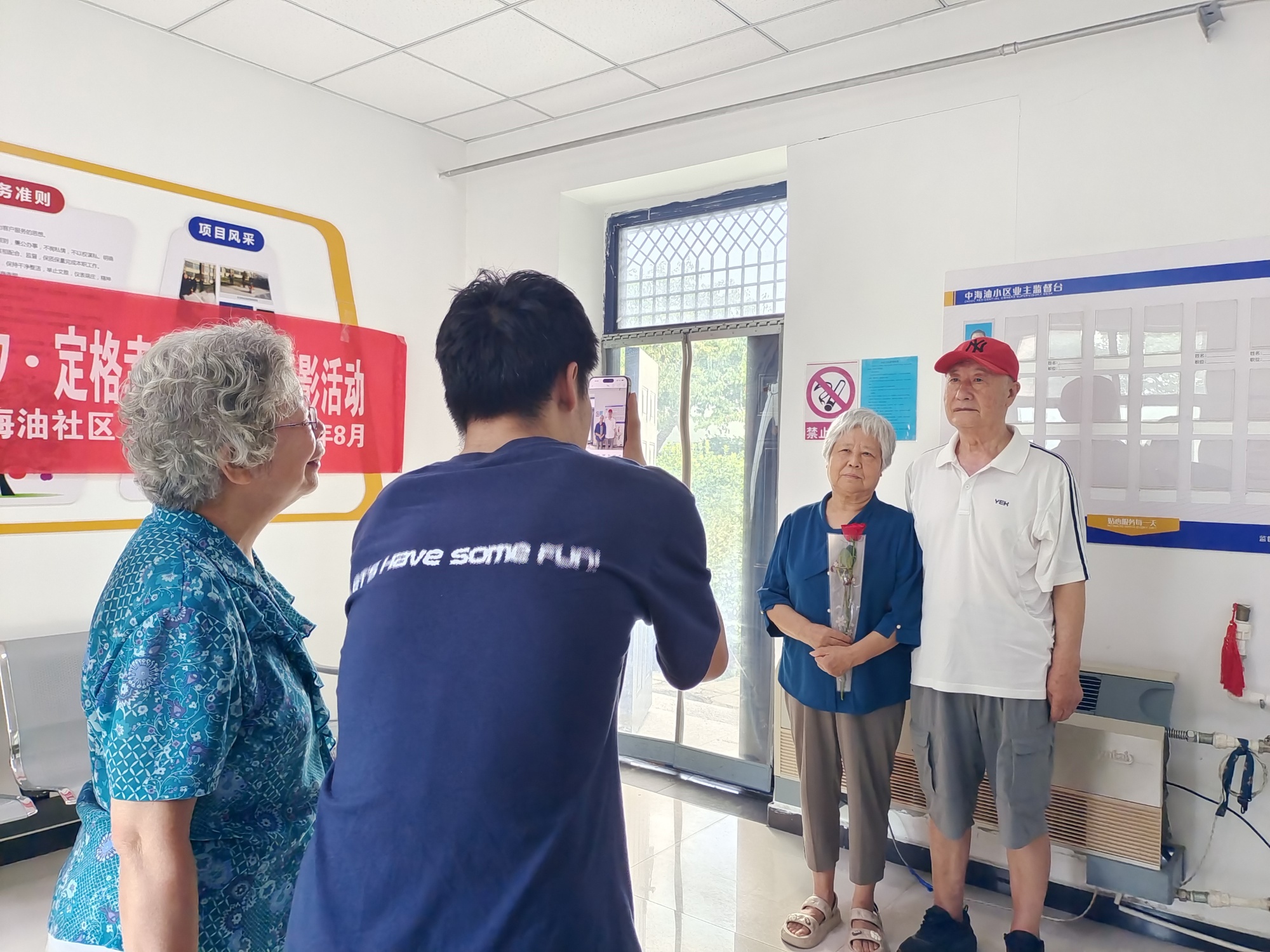 志愿者為轄區(qū)60歲以上老人拍照(王梓涵 攝)