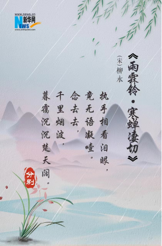 【意譯】含淚對視,說不出分別的話,只想到這一去路途遙遠,不知盡頭。