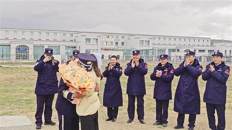里孜出入境邊防檢查站2023年成立,是全國最年輕、西藏海拔最高的出入境邊防檢查站,被稱為“云上國門”。2023年,因忙于參與組建里孜出入境邊防檢查站、保障通關(guān)等大事,姚萬權(quán)沒有來得及給妻子準(zhǔn)備一個求婚儀式。此次,看著新婚妻子跨越2300余公里來到自己奮斗的地方,姚萬權(quán)決定給她補(bǔ)辦一個求婚儀式。