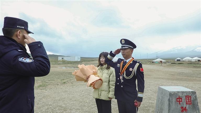 姚萬權(quán)是里孜出入境邊防檢查站的一名民警,8月5日,他的新婚妻子趙詩衡趁著暑假來到了里孜口岸探望他。看著長途奔波前來,又因為高原反應(yīng)疲憊憔悴的妻子,他準(zhǔn)備在海拔4772米的界樁前給妻子補(bǔ)辦一個求婚儀式,這是屬于戍邊民警的“硬核”浪漫。