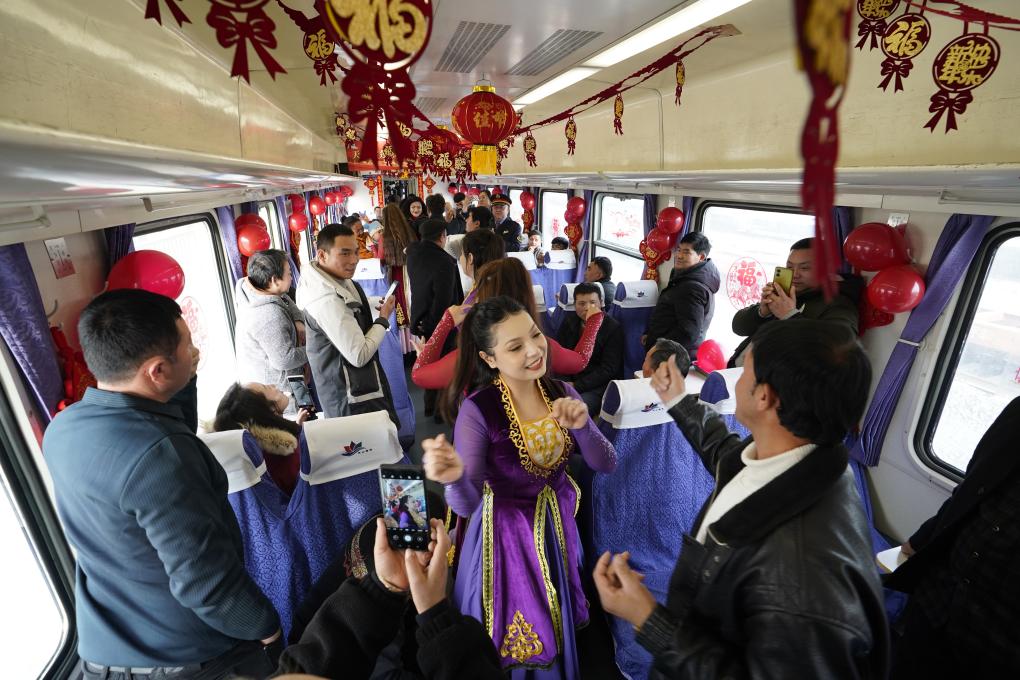 車窗外,廣袤的戈壁灘一望無際;車窗內(nèi),新春的煙火氣越來越濃。不同的鄉(xiāng)音此起彼伏,手邊是大包小裹的心意,話里話外,是對團(tuán)圓的期盼。