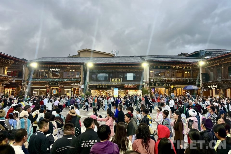 圖為在熙攘的獨克宗古城內,游客們和當?shù)匕傩仗伹f(2025年8月攝) 攝影:邊子捷