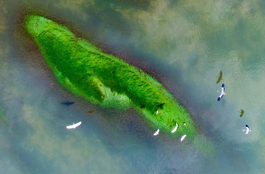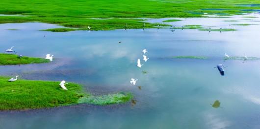 一群白鷺棲息在重慶濕地地帶。他們成群結(jié)對,在這里覓食,綠色的草海成了它們的樂園。