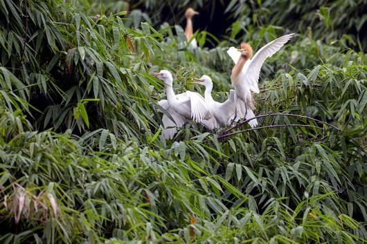 2萬多只白鷺在三多橋白鷺保護(hù)區(qū)安家筑巢,無數(shù)的新生命在這里破殼,羽翼漸豐的小白鷺將展翅飛翔。