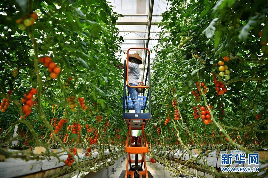 在陵水現(xiàn)代農(nóng)業(yè)示范基地,工人在管理通過擱架吊蔓式栽培技術(shù)種植的詹妮瑞番茄(3月26日攝)。在海南省陵水現(xiàn)代農(nóng)業(yè)示范基地,無土栽培技術(shù)、計(jì)算機(jī)自動(dòng)化控制系統(tǒng)、立體垂直旋轉(zhuǎn)栽培、有機(jī)循環(huán)利用等多種科技元素聚集在一起。農(nóng)業(yè)工廠化的運(yùn)作模式,讓大棚里的瓜菜產(chǎn)量較傳統(tǒng)種植翻了幾番,農(nóng)民收入也大幅提高。新華社記者 郭程 攝