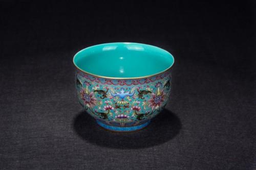 琺瑯彩松石綠全圖案凈水杯