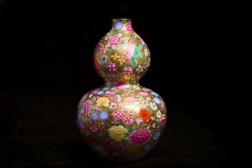 琺瑯彩金地萬花葫蘆瓶
