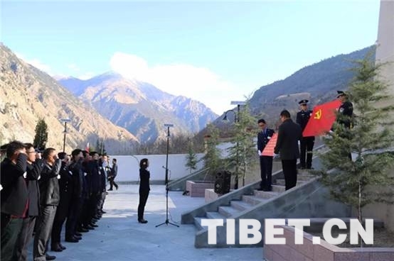 圖為西藏朗縣干部群眾為烈士默哀