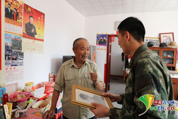 孟曉暉的爺爺孟慶欣也曾經(jīng)是一名解放軍戰(zhàn)士,并榮獲過(guò)獨(dú)立獎(jiǎng)?wù)?。每?dāng)說(shuō)起自己的從軍經(jīng)歷時(shí),這位年過(guò)八旬的老人都十分振奮,談到繼承了“紅色基因”的兒孫時(shí),孟慶欣老人的驕傲與自豪更是溢于言表。他說(shuō),自己經(jīng)常把當(dāng)年參軍的故事講給子孫聽(tīng),曉暉就是聽(tīng)著爺爺?shù)墓适麻L(zhǎng)大的,從小就說(shuō)自己長(zhǎng)大后也要當(dāng)兵。在唱起這首凝聚了他熱血青春與報(bào)國(guó)壯志的軍歌之前,老人嚴(yán)肅地說(shuō)道:“我要換上一身整潔的軍裝!”