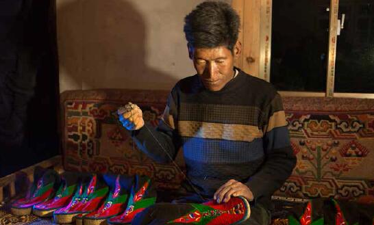 傳承人旺堆手工制作的藏鞋