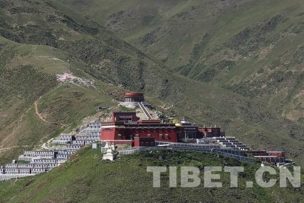 7月18日上午,班禪一行來(lái)到位于玉樹(shù)市北面木塔梅瑪山的結(jié)古寺。結(jié)古寺是當(dāng)?shù)卦洳柯涞乃_迦派寺院,歷來(lái)以建筑宏偉、寺僧眾多、文物豐富、名僧高徒多聞名遐邇。2010年4月14日玉樹(shù)發(fā)生7.1級(jí)地震后,結(jié)古寺遭受重創(chuàng)。如今,經(jīng)過(guò)災(zāi)后重建,結(jié)古寺甚至可以說(shuō)比往日更輝煌。