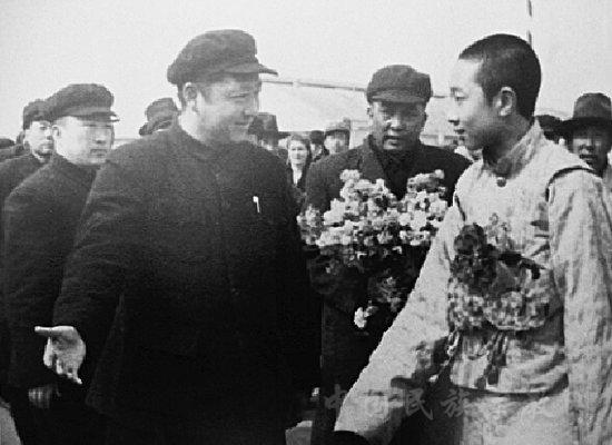 圖為1951年4月22日,習仲勛(前左)率領西北軍政代表熱烈歡迎途經(jīng)西安赴北京的十世班禪(前右)。 圖片來源:中國網(wǎng)