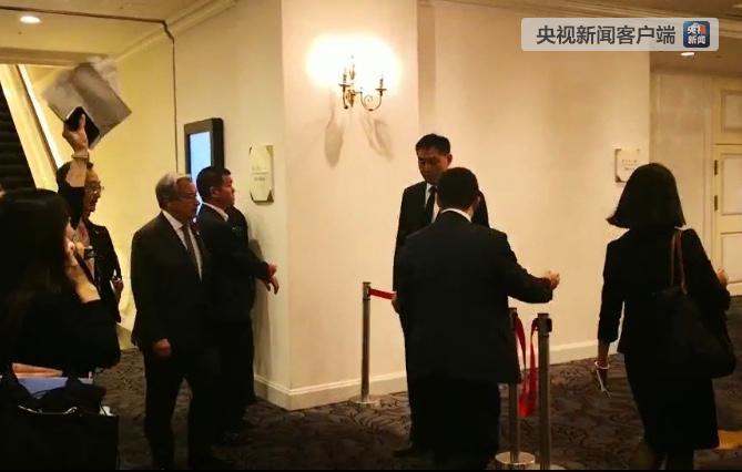 當(dāng)天習(xí)近平出席的第一場活動(dòng)就是在下榻酒店會(huì)見古特雷斯。這是古特雷斯正在走進(jìn)會(huì)見現(xiàn)場。(央視記者魏建拍攝)