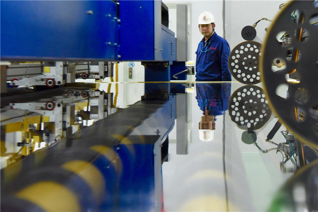 2019年1月9日,在中建材蚌埠玻璃工業(yè)設(shè)計(jì)研究院的生產(chǎn)車間內(nèi),工作人員在巡檢超薄玻璃生產(chǎn)線。新華社記者 湯陽 攝