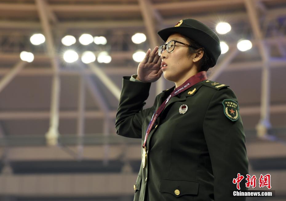 10月24日晚,第七屆世界軍人運(yùn)動會女子鐵餅決賽在湖北省武漢市舉行,中國選手馮彬以64米83奪得冠軍。圖為馮彬在頒獎儀式上。中新社記者 侯宇 攝