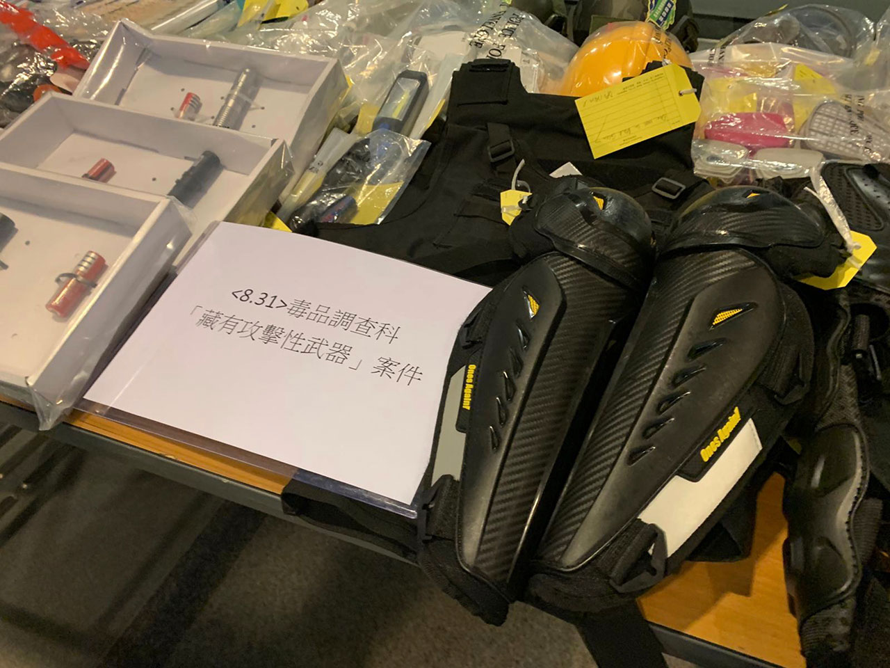 香港警方在1日凌晨的發(fā)布會上通報,警方31日中午,在銅鑼灣一間酒店房間檢獲一批頭盔、裝甲、防毒口罩等裝備,及超過四萬元現(xiàn)金,以涉嫌藏有攻擊性武器拘捕三名年齡介于16至26歲男子。
