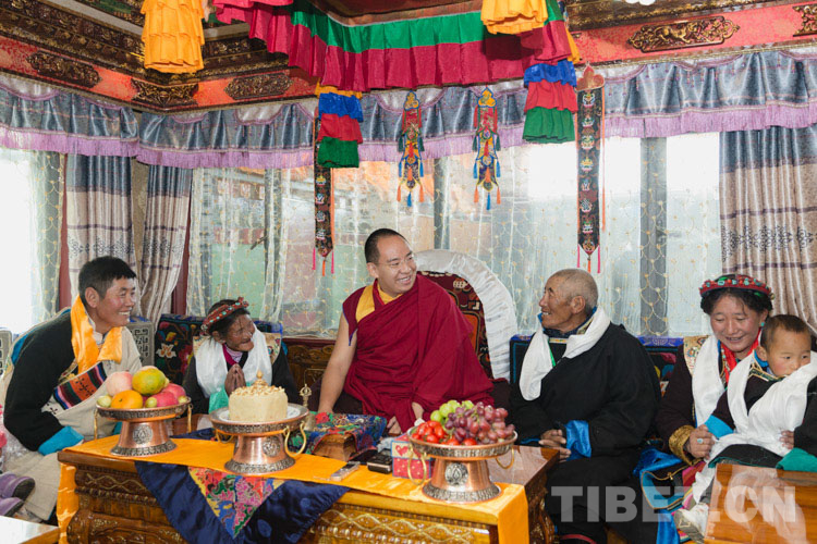 圖為十一世班禪在那曲市巴青縣“赤堆東雄”黑帳篷內(nèi)體驗傳統(tǒng)游牧文化 攝影:王淑