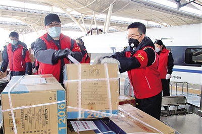 在突擊隊(duì)為生命接力的日子里,曾有兩名醫(yī)療隊(duì)隊(duì)員不小心將自己的隨身背包落在了車上。列車已經(jīng)開走了,突擊隊(duì)隊(duì)員聞訊馬上聯(lián)系列車長,待東西找到后,再通過第二天的過路火車帶回武漢,并轉(zhuǎn)送到醫(yī)療人員的手里。賈青青說:“我們的目標(biāo)是一致的,那就是為武漢加速。他們?yōu)榛颊叻?wù),我們就為他們服務(wù)?!?/p>