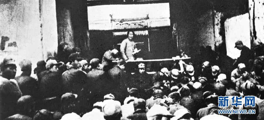1935年12月27日,毛澤東在陜北瓦窯堡黨的活動分子會議上作《論反對日本帝國主義的策略》報告(資料照片)