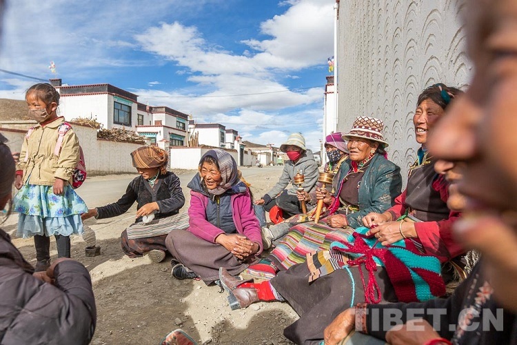 圖為倫布雪鄉(xiāng)蘇格村村民圍坐在一起聊天編織 攝影:趙耀