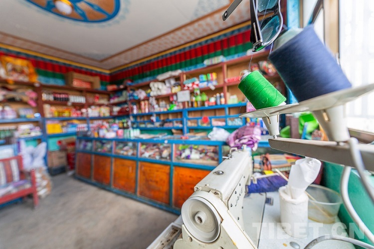 圖為央金白姆的縫紉機和小賣部 攝影:趙耀