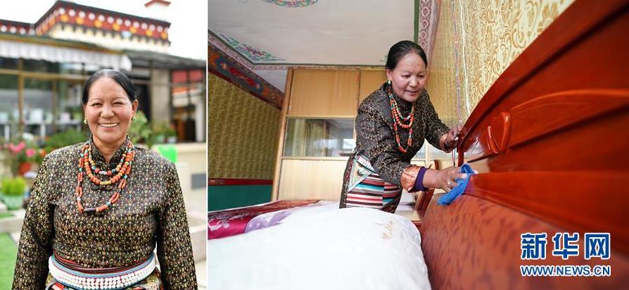 拼版照片:左圖為西藏阿里地區(qū)札達(dá)縣札布讓村村民金珠德吉在自家的家庭旅館;右圖為金珠德吉在家庭旅館里打掃衛(wèi)生。古格王國(guó)遺址坐落于札布讓村境內(nèi)。近年來(lái),隨著札達(dá)縣“旅游興縣”政策的推進(jìn),當(dāng)?shù)卮迕袂山琛扒旯鸥駳v史”大做文化旅游文章,每年吸引眾多游客前來(lái)參觀,金珠德吉就勢(shì)經(jīng)營(yíng)起家庭旅館。現(xiàn)在,金珠德吉的家庭旅館已有30多個(gè)床位,因設(shè)施完善、衛(wèi)生良好還被村里評(píng)為“金星級(jí)”家庭旅館。見(jiàn)到金珠德吉的家庭旅館生意火爆,村民們紛紛效仿。如今,這個(gè)只有36戶144人的小村莊有32戶人家都開(kāi)了家庭旅館(7月26日攝)。 新華社記者 詹彥 攝