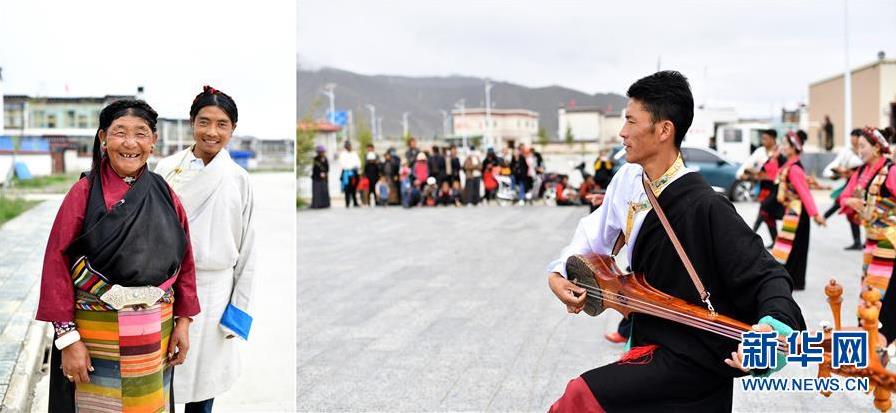 拼版照片:左圖為西藏日喀則市拉孜縣查務(wù)鄉(xiāng)明瑪村村民倉(cāng)瓊(左)和兒子群培次仁;右圖為拉孜縣民間藝術(shù)團(tuán)在明瑪村易地搬遷點(diǎn)為村民表演。明瑪村舊村交通不便,資源匱乏,自然環(huán)境惡劣,發(fā)展和脫貧受到制約。2016年,當(dāng)?shù)卣?jīng)多次規(guī)劃研究,在征求村民意見(jiàn)后,確定將明瑪村整村搬遷。2016年10月,倉(cāng)瓊和家人搬遷到了明瑪村新村。新村交通便利,文化休閑廣場(chǎng)、活動(dòng)室、學(xué)校等基礎(chǔ)設(shè)施完善。倉(cāng)瓊和家人商量后,在新村開(kāi)了一家小商店,一年有1萬(wàn)多元的收入,再加上村里養(yǎng)殖專(zhuān)業(yè)合作社的分紅,倉(cāng)瓊一家的日子越來(lái)越好(8月2日攝)。 新華社記者 詹彥 攝