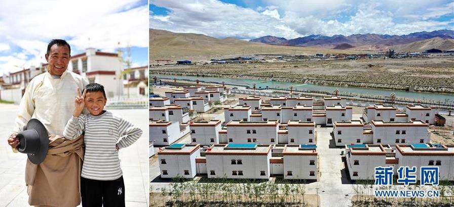 拼版照片:左圖為西藏阿里地區(qū)改則縣物瑪鄉(xiāng)村民頓珠多吉(左)和孫子曲達(dá)在噶爾縣康樂(lè)新居易地扶貧搬遷安置點(diǎn);右圖為噶爾縣康樂(lè)新居易地扶貧搬遷安置點(diǎn)一角(無(wú)人機(jī)照片)。2017年,頓珠多吉一家從改則縣物瑪鄉(xiāng)搬遷到噶爾縣康樂(lè)新居易地扶貧搬遷安置點(diǎn),住進(jìn)了100平方米的新居。在安置點(diǎn),和頓珠多吉一家一樣,從阿里地區(qū)改則縣、措勤縣、革吉縣等地搬遷來(lái)的2000多名群眾開(kāi)啟了更加美好的生活(7月25日攝)。 新華社記者 詹彥 攝