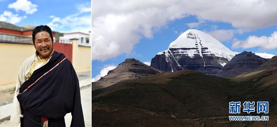 拼版照片:左圖為西藏阿里地區(qū)普蘭縣巴嘎鄉(xiāng)崗莎村村民崗瑪達(dá)杰;右圖為位于西藏阿里地區(qū)普蘭縣境內(nèi)的岡仁波齊峰。崗莎村地處海拔6656米的岡仁波齊峰腳下。近年來(lái),前來(lái)岡仁波齊峰轉(zhuǎn)山旅游的游客與日俱增,崗莎村借此大力發(fā)展旅游業(yè),為游客提供吃、住、行、游、購(gòu)等服務(wù)。每到旅游旺季,崗瑪達(dá)杰為游客提供騎馬轉(zhuǎn)山、運(yùn)輸服務(wù),一年下來(lái)有4萬(wàn)多元的收入(7月27日攝)。 新華社記者 詹彥 攝