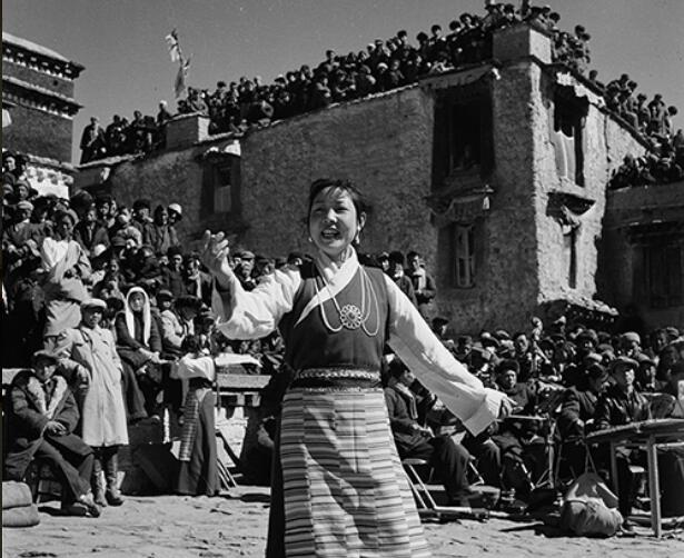 1959年,西藏歌舞團演員在拉薩為民眾歌唱。陳宗烈攝