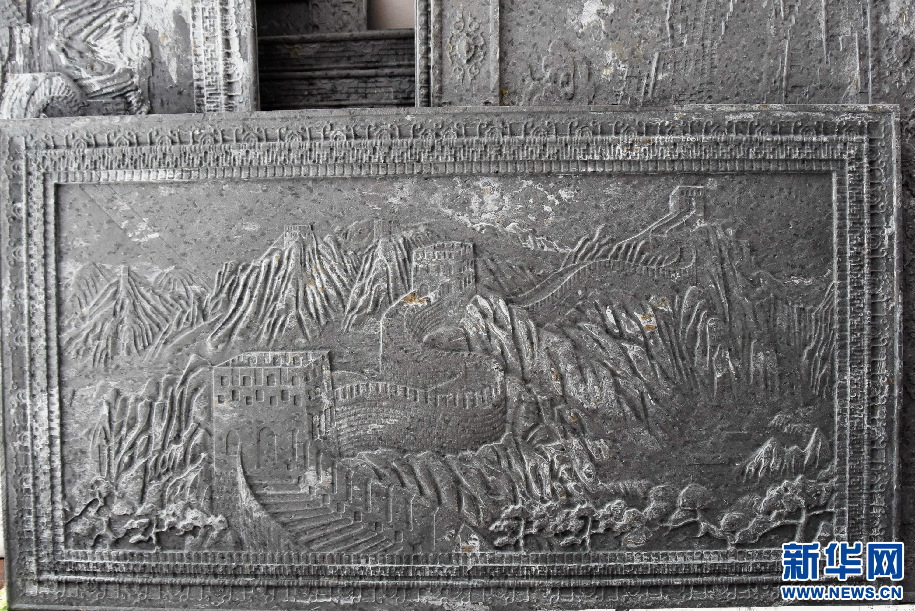 刻有萬(wàn)里長(zhǎng)城還未上色的工藝品(9月16日攝)。新華網(wǎng) 張宸攝