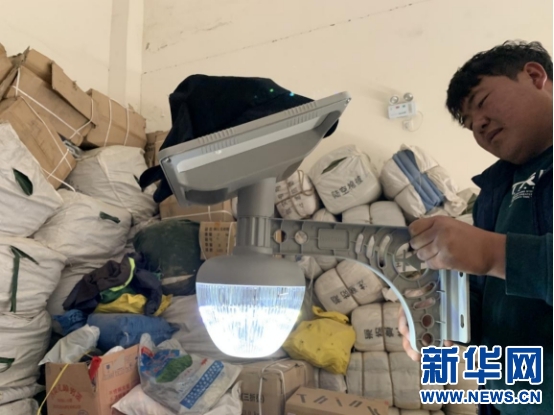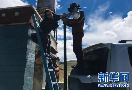 駐村工作隊及巴扎鄉(xiāng)工作人員積極調(diào)試設備,為后期路燈安裝做準備。新華網(wǎng)發(fā) 張峽攝