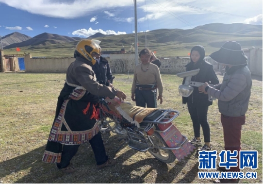 牧民群眾積極與駐村工作隊的太陽能路燈安裝工作。新華網(wǎng)發(fā) 旦增卓瑪攝