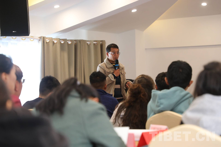 圖為拉巴次仁在林芝市人社局主辦的大學(xué)生“職來職往”現(xiàn)場招聘會上,作為創(chuàng)業(yè)代表分享創(chuàng)業(yè)經(jīng)驗