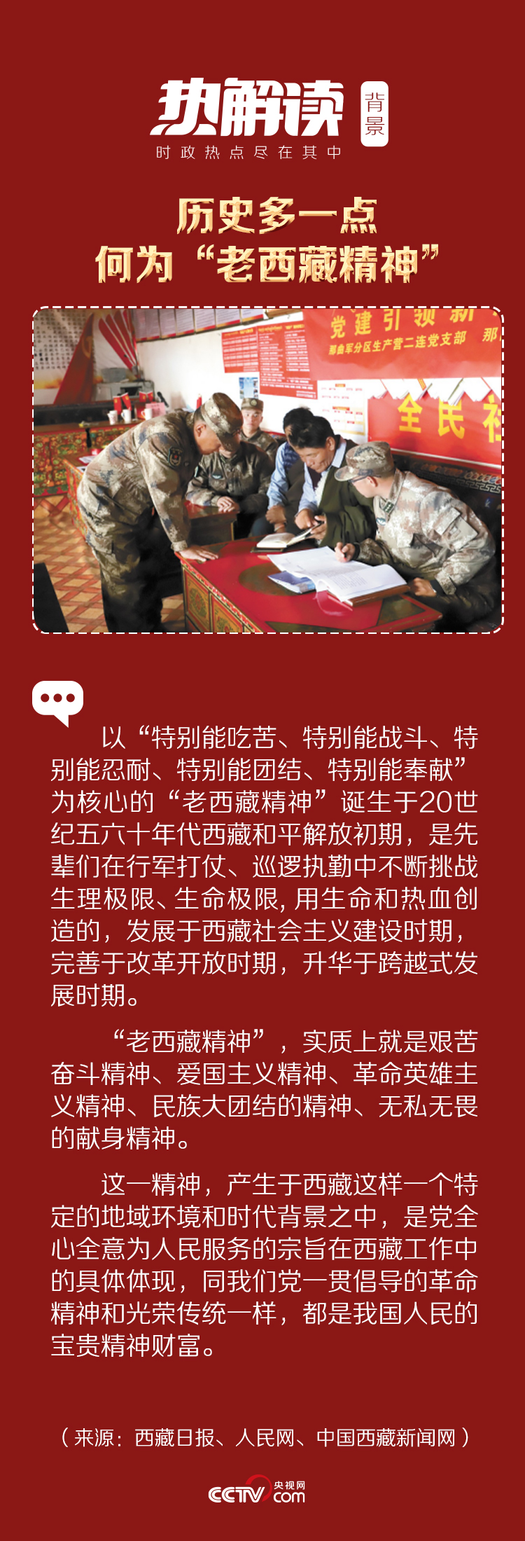 那些背著背包以雙腳征服14座海拔5000多米險峻雪山的中國人民解放軍將士,用軍魂熔鑄“老西藏精神”;寫出“冰山愈冷情愈熱,耿耿忠心照雪山”詩句的援藏干部孔繁森,用生命踐行“老西藏精神”;滔滔江河上搭金橋、重重險山間辟大道,迢迢天路無言訴說著“老西藏精神”;“玉麥每一個人都是祖國的坐標”,在西藏長達4000多公里的邊境線上,數(shù)不清的黨員干部默默踐行傳承著“老西藏精神”……