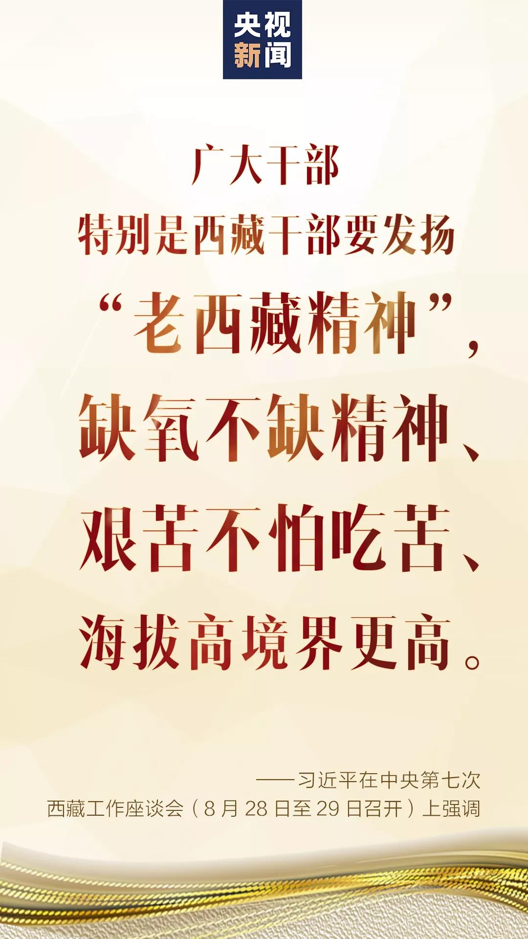 廣大干部特別是西藏干部要發(fā)揚(yáng)“老西藏精神”,缺氧不缺精神、艱苦不怕吃苦、海拔高境界更高,在工作中不斷增強(qiáng)責(zé)任感、使命感,增強(qiáng)能力、錘煉作風(fēng);