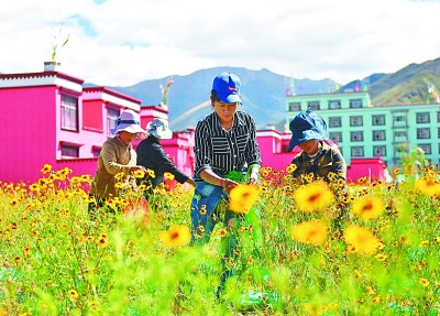 拉薩市四季吉祥村村民在采摘雪菊。新華社發(fā)