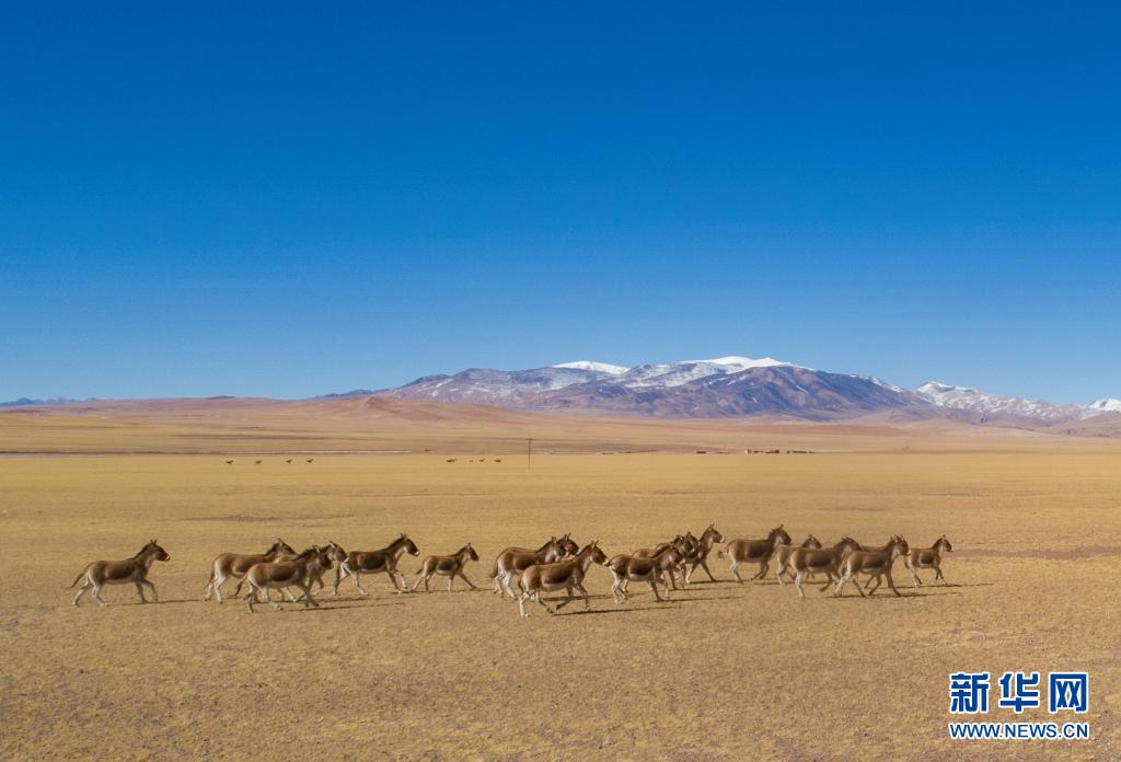 這是在西藏羌塘國家級自然保護區(qū)拍攝的藏野驢(無人機照片,2019年12月23日攝)。新華社記者 孫非 攝