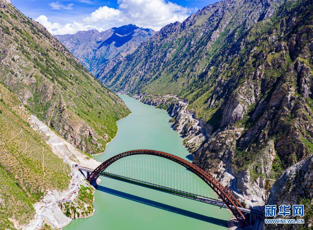 6月25日,全長435公里、設計時速160公里的拉林鐵路建成通車,西藏首條電氣化鐵路建成,同時復興號實現(xiàn)對31個省區(qū)市全覆蓋。這是試運行的復興號列車行駛在藏木特大橋(無人機照片,6月17日攝)。新華社記者 普布扎西 攝