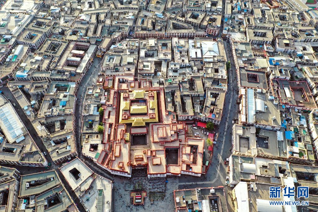 鳥瞰拉薩八廓街(無人機照片,2019年8月10日攝)。新華社記者 普布扎西 攝