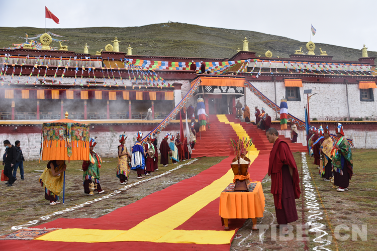 8月27日、28日,班禪在那曲市聶榮縣苯教昌都寺與朗色寺講經(jīng)、禮佛。