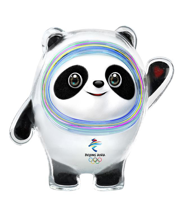 以熊貓為原型進(jìn)行設(shè)計(jì)創(chuàng)作。將熊貓形象與富有超能量的冰晶外殼相結(jié)合,體現(xiàn)了冬季冰雪運(yùn)動(dòng)和現(xiàn)代科技特點(diǎn)。頭部外殼造型取自冰雪運(yùn)動(dòng)頭盔,裝飾彩色光環(huán),其靈感源自于北京冬奧會(huì)的國(guó)家速滑館——“冰絲帶”,流動(dòng)的明亮色彩線條象征著冰雪運(yùn)動(dòng)的賽道和5G高科技;左手掌心的心形圖案,代表著主辦國(guó)對(duì)全世界朋友的熱情歡迎。整體形象酷似航天員,寓意創(chuàng)造非凡、探索未來(lái),體現(xiàn)了追求卓越、引領(lǐng)時(shí)代,以及面向未來(lái)的無(wú)限可能。